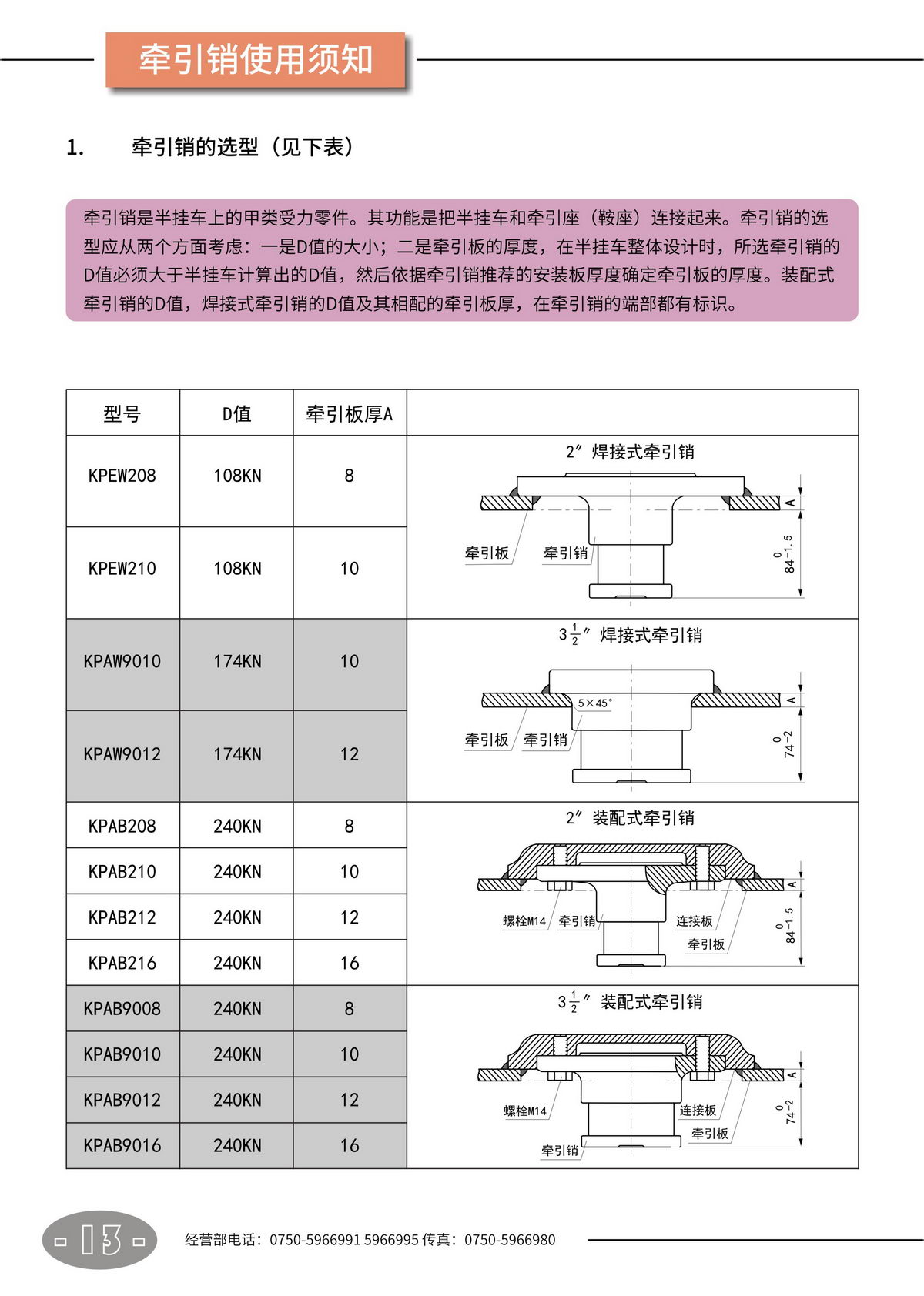 鞍座 · 牽引銷【產(chǎn)品使用說(shuō)明書(shū)】