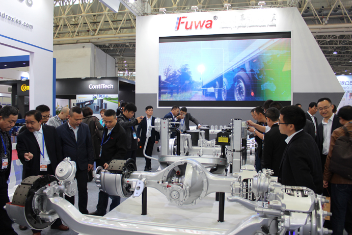 此次展會(huì),富華展出的整套商用車(chē)底盤(pán)行走機(jī)構(gòu)以及冷藏集裝箱產(chǎn)品,吸引了大批客戶及媒體的關(guān)注,展位現(xiàn)場(chǎng)異常火爆,成為本屆展會(huì)的一大亮點(diǎn)。 富華帶來(lái)的全系產(chǎn)品包括:卡車(chē)轉(zhuǎn)向前橋、卡車(chē)后橋、牽引鞍座、(電動(dòng))支腿、Fuwa富華系列車(chē)軸、VALX沃勝系列車(chē)軸、空氣懸掛、適用于轎運(yùn)車(chē)的中置車(chē)軸以及自轉(zhuǎn)向車(chē)軸等產(chǎn)品。